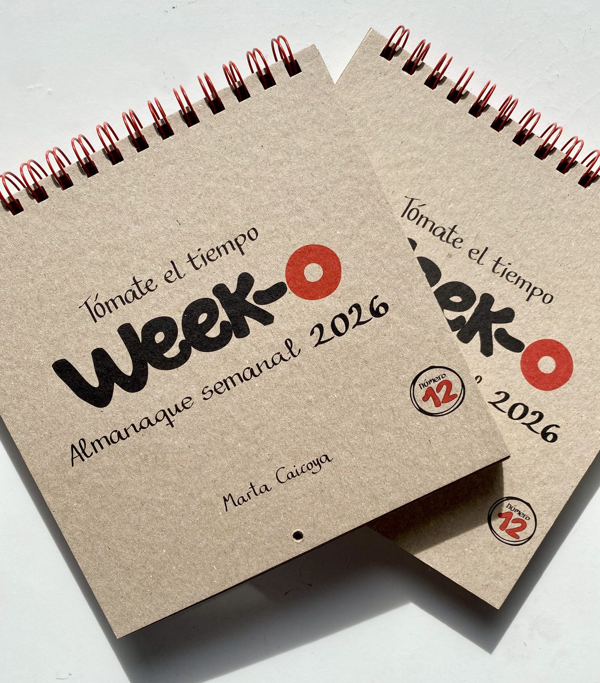 Está impreso en cartón cien por cien reciclado, de un color gris precioso, con su fibra salpicando las páginas…ay, qué bonito es. Y, palabra de almanaquera, que antes ese cartón fue caja de galletas o de cereales. Aquí todo se recicla, hasta el envoltorio que no voy a decirte cómo es, pero te garantizo que no tirarás a la basura.